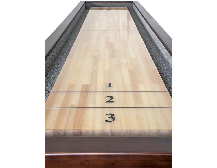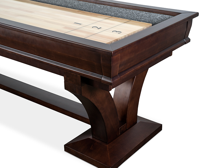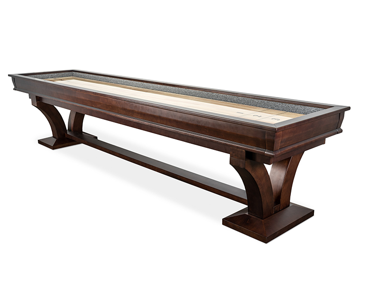 * 12 ' Espresso Finish* * Playing Surface : 128" L x 20" W x 2” * Overall dimensions: 144" x 32" x 28” * Weight: 586lbs * Large climatic adjusters to ensure flat playing surface. * Solid wood * Carpet padded gutters * Contemporary shuffleboard table includes: 4 blue pucks, 4 red pucks, 1 can of wax, and a brush |