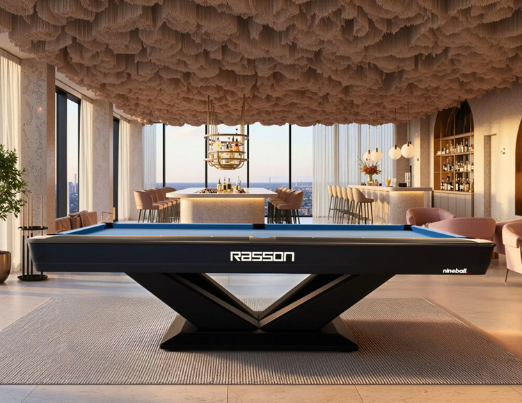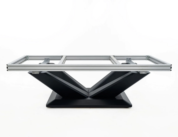 The Rasson Victory III boasts a striking design featuring unique pedestal legs that form a bold "V" shape from every angle. Engineered for professional performance, the table includes Rasson’s patented Slate Leveling System (SLS) and Leg Leveling System (LLS). It is built with 1" thick premium Rasson slate and MAX (K55) rubber cushions, combined with a reinforced aluminum alloy beam to ensure exceptional consistency, responsiveness, and long-lasting durability.