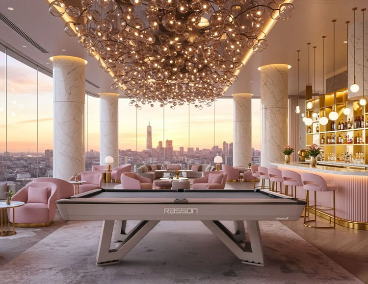 Built using advanced American pool technology developed by Rasson, the Wolf includes a full aluminum alloy apron, offering superior texture and durability. The precisely engineered zinc alloy corners ensure seamless assembly and refined detail. Additionally, a premium fluorocarbon paint finish, comparable to automotive-grade standards, gives the table a sleek, radiant appearance and outstanding stability. The result is a table that merges advanced engineering with contemporary style, designed for performance and built to impress.